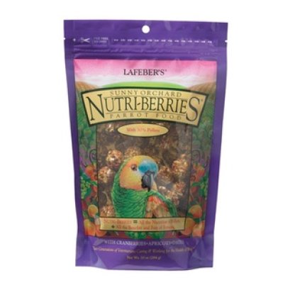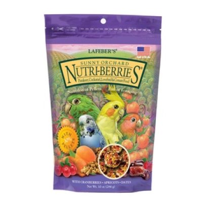 ซันนี่ ออร์ชาร์ด นิวทริ-เบอร์รี่ รวบรวมส่วนผสมที่สดใหม่ เมล็ดพืช วิตามินและแร่ธาตุที่จำเป็นเข้าด้วยกันเพื่อให้ได้คุณค่าทางโภชนาการทั้งหมดของอาหารเม็ด ทั้งประโยชน์และความสนุกสนานในการหาอาหาร แทนที่จะบดส่วนผสมลงในรูปแบบอัดเม็ด ส่วนผสมใน Sunny Orchard Nutri-Berries ส่วนใหญ่จะคงเหลือทั้งหมดไว้ เพื่อให้นกได้รับรสชาติและเนื้อสัมผัสอาหาร และแตกต่างจากการผสมเมล็ดพืชปกติที่มีวิตามินและแร่ธาตุที่จะสูญเสียประโยชน์ต่อสุขภาพเมื่อนกขบเมล็ดออก Nutri-Berries ทำจากเมล็ดและธัญพืชที่กะเทาะเปลือกหุ้ม แต่ละตัวจะถูกเคลือบด้วยวิตามินและแร่ธาตุที่จำเป็นเพื่อให้แน่ใจว่านกของคุณได้รับสารอาหารที่สมดุลในการกัดแต่ละครั้ง Sunny Orchard Nutri-Berries ยังมีส่วนอาหารเม็ด 30% อีกด้วย